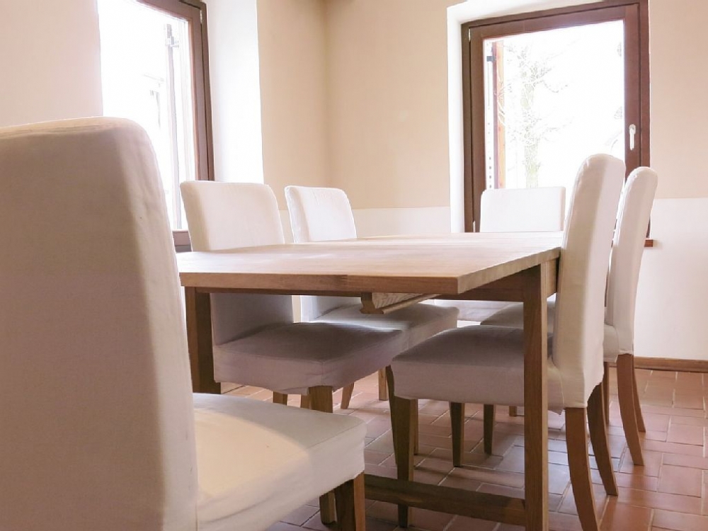 Polovnik House is a charming 3 bedroom chalet located on the main square of the peaceful riverside village of Srpenica midway between Bovec & Kobarid (circa 10km to each) in the heart of the stunning Soca Valley. The house is beautifully renovated to an excellent standard combining many carefully restored original features with modern comforts and facilities, creating a welcoming atmosphere and retaining the alpine charm of the building. The house offers a large open plan kitchen, dining room and living room with log burner. Upstairs are three spacious bedrooms, one with balcony and great mountain views. In addition there are two bathrooms, kitchen storeroom and cellar room for storage of skis etc.